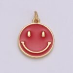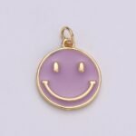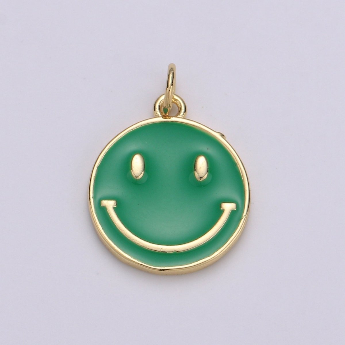 Epoxy Happy Face in Gold Round Charm, Enamel Happy Face Charm, Smiley Gold Enamel Charms, Dainty Smile charm, Teal, Red, White, Yellow, Cute Gold Smiley Face Gold Filled Charm – D-136 TO D-145