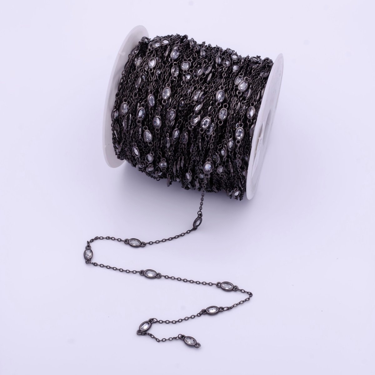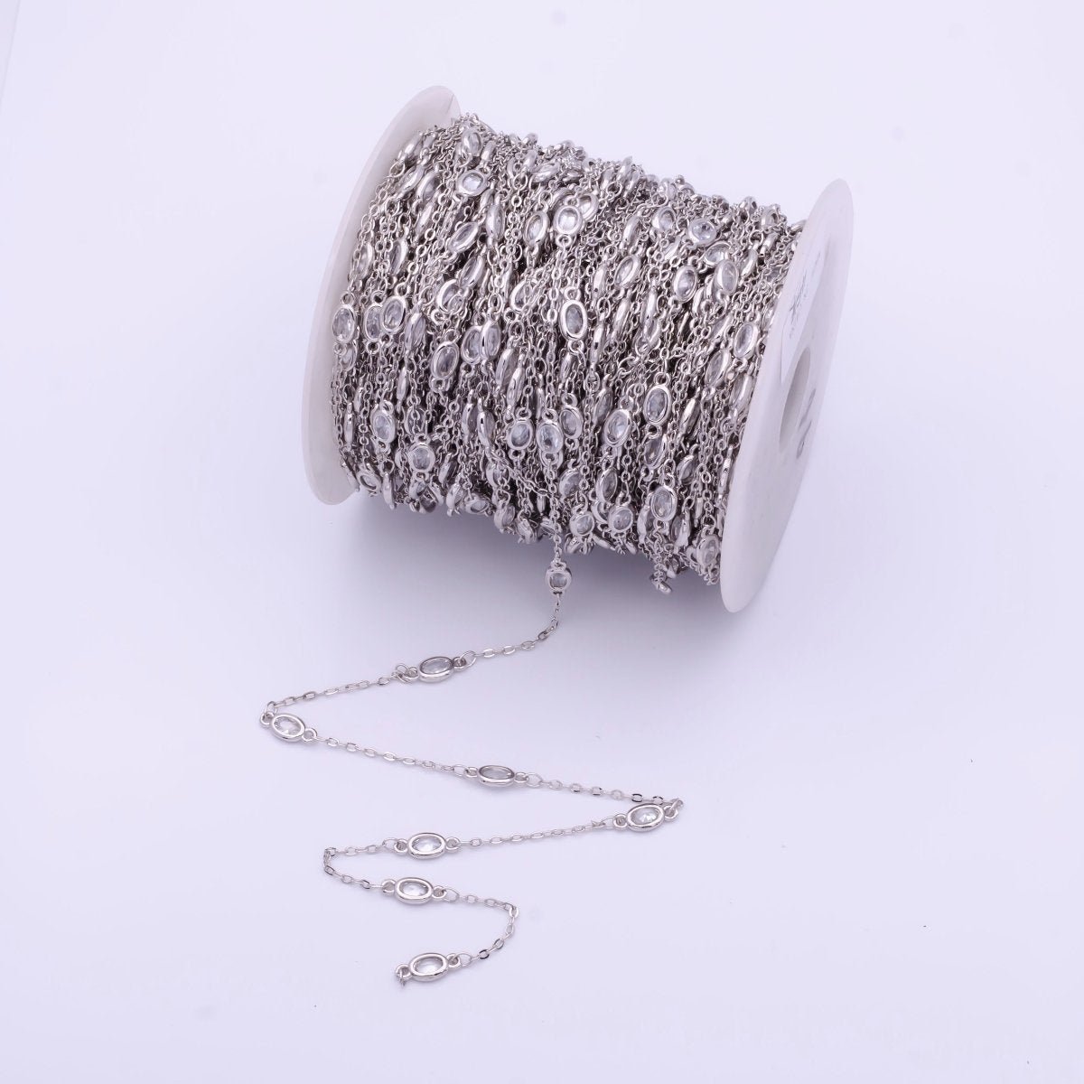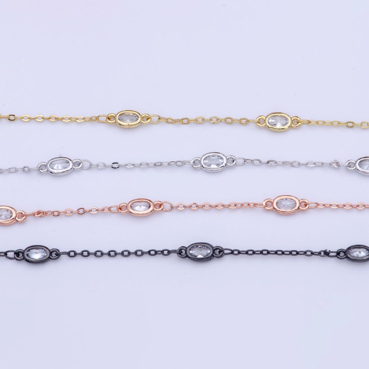 Gold Filled Oval Bezel Clear Cubic Zirconia CZ Unfinished Wholesale Chain by Yard | ROLL-818, ROLL-819, ROLL-820, ROLL-821