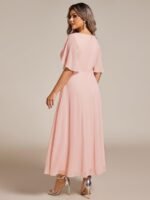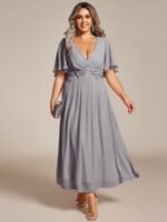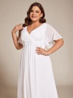 Radiate elegance in our Plus Size Elegant Short Sleeves V-Neck Floral Applique Wedding Guest Dress. The intricate floral applique on short sleeves and V-neckline adds a touch of romance, enhancing the overall grace of this dress. Tailored for comfort and style, this plus-size gown is perfect for curvy figures attending weddings. Embrace the joyous celebration with confidence and sophistication in this elegant wedding guest dress.