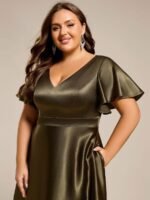 Plus Size Satin Midi Wedding Guest Dress with Pockets