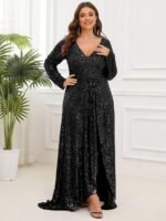 Be the first to review “Plus Size Sequin V-Neck Long Sleeve High Slit Bodycon Evening Dress” Cancel reply