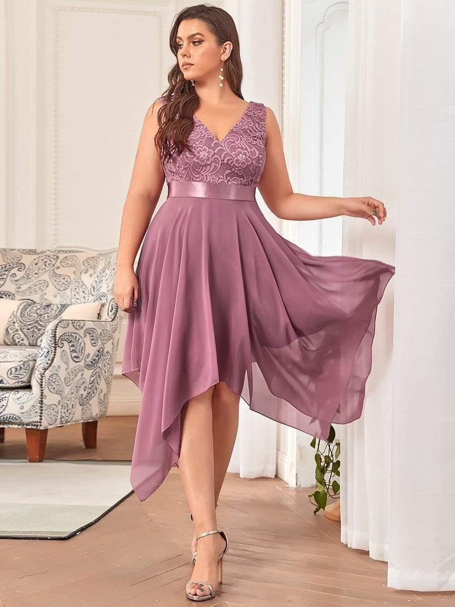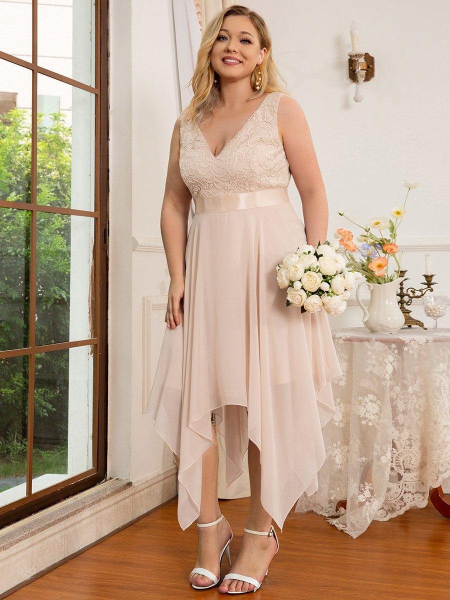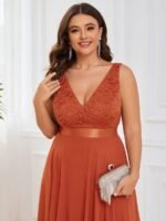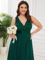 Plus Size Stunning V Neck Prom Lace Dress for Women