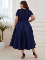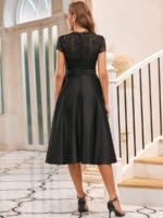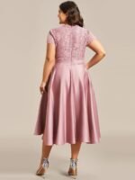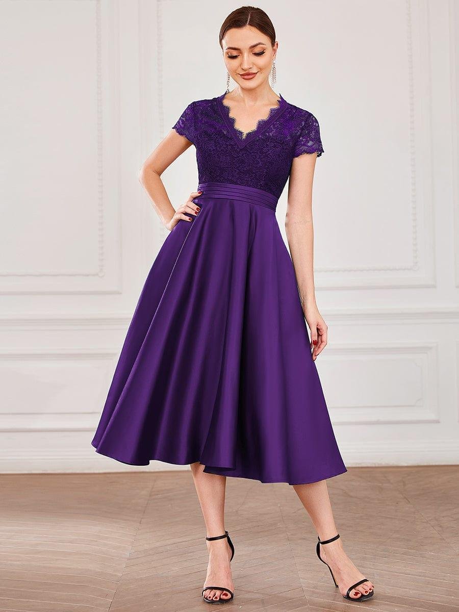 Scrolling for a unique dress with pockets that is hard to resist for a charismatic look? Then this party prom dress is perfect to order immediately. Its sheer bodice has a romantic charming appearance with appealing cut-work short cap-sleeves and zig-zag-edged V-neckline. The slimming waist belt is adorned with symmetrical multiple plates paired with a lace bodice enough to guarantee a charming look on your special day. The knee-length skirt flaring gracefully from the fitted waist adds delicacy to your perfect figure. Grab this romantically appealing dress and pair it up with stylish earrings and a classy clutch for a matchless look at any party, prom, wedding, or any big day.