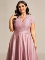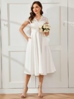 Be the first to review “Romantic V-neck Lace Bodice Wedding Guest Dress with Pockets”