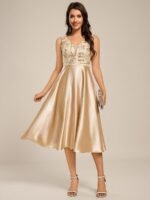 Be the first to review “Sleeveles A-Line Midi Satin Wedding Guest Dress with Pockets” Cancel reply