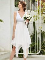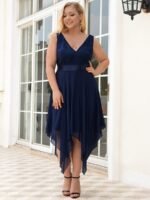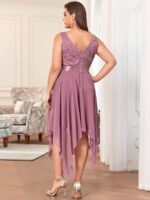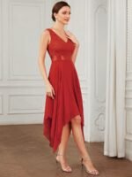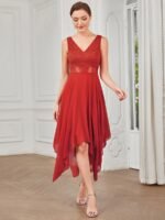 Stunning V Neck Lace Dress with Asymmetrical Hems