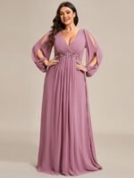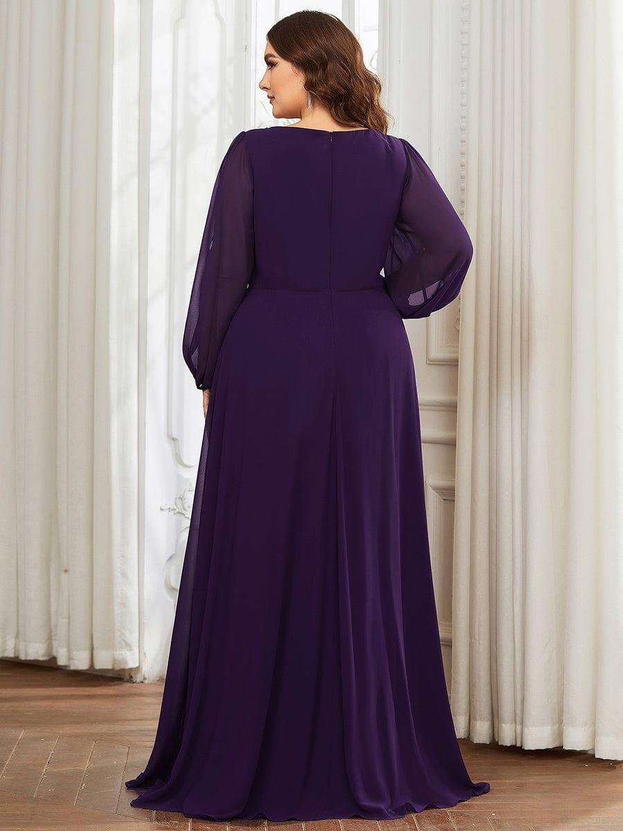 Stylish Plus Size Chiffon Formal Evening Dresses with Long Lantern Sleeves