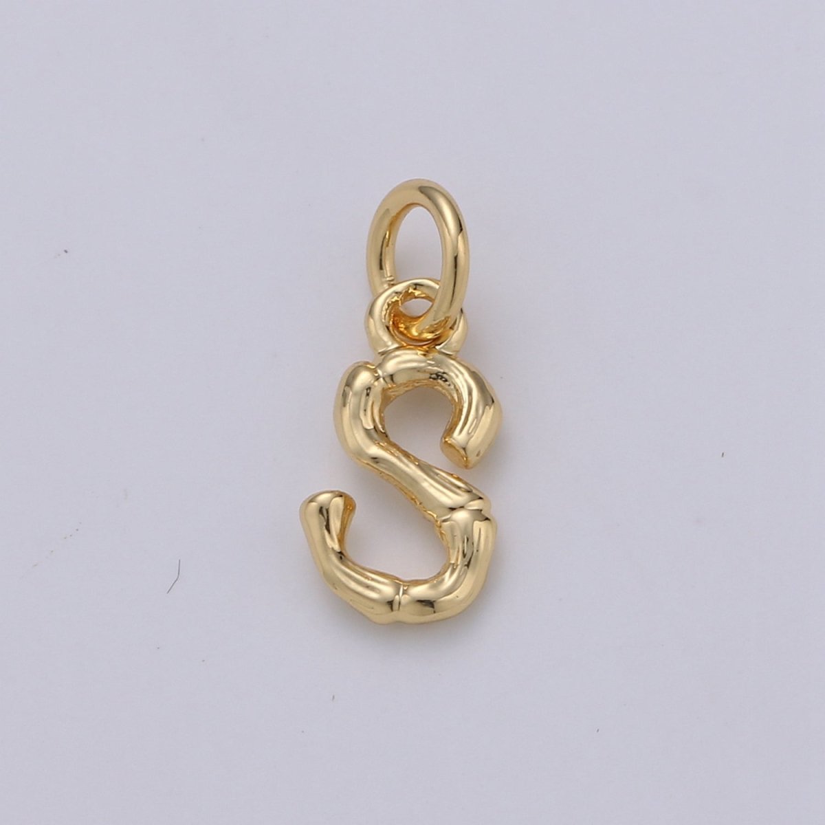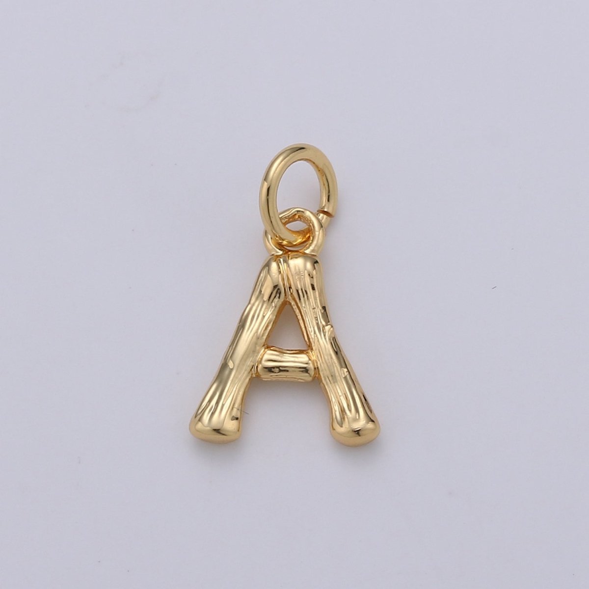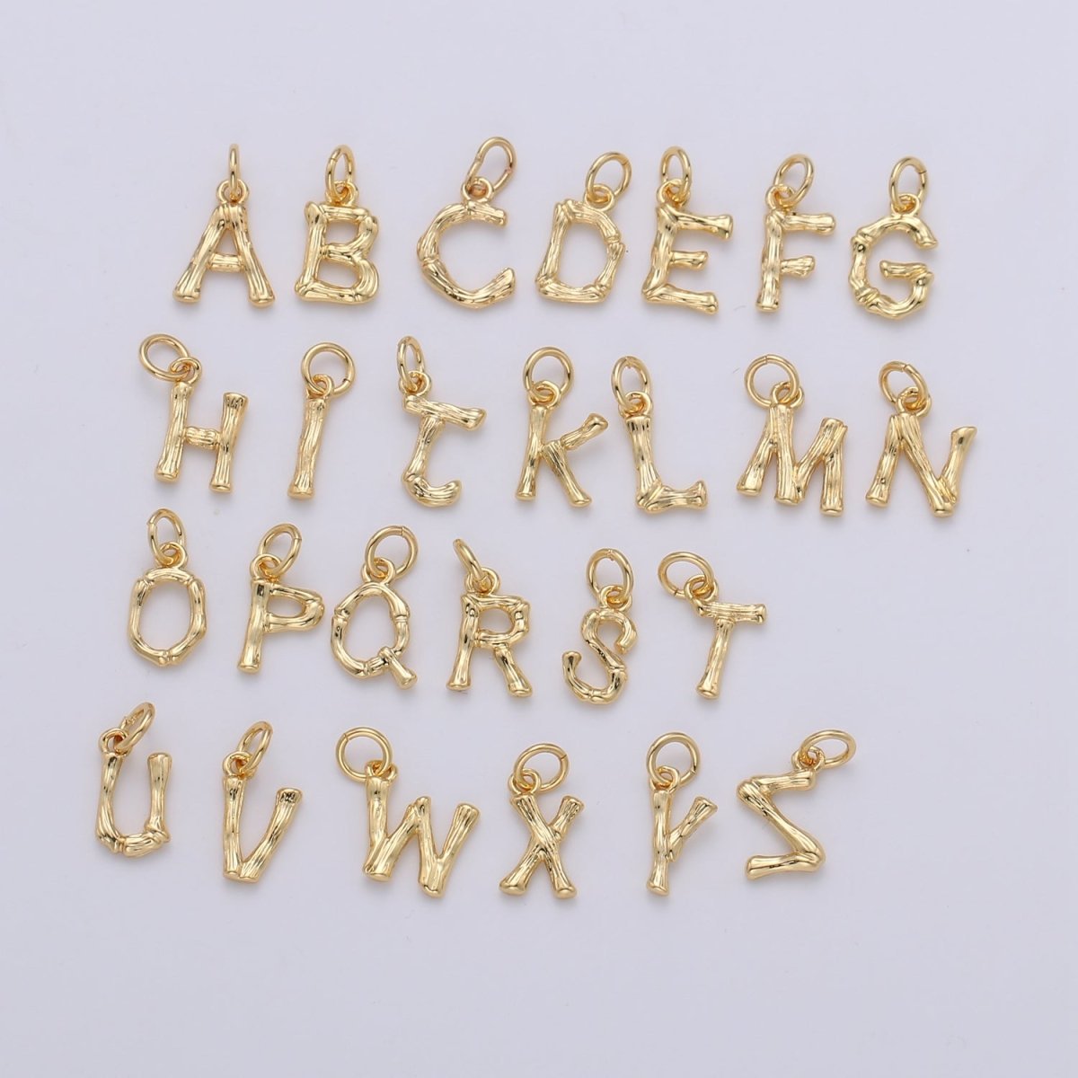 Tiny Bamboo Initial, Letter Alphabet bamboo charms Dainty Gold bamboo Pendant Charm for Necklace Bracelet Earring Component A-057 to A-069