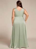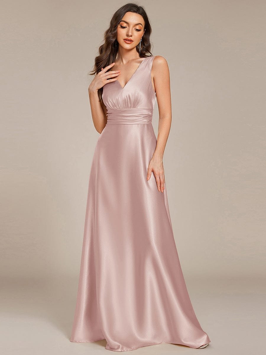 V-neck Empire Waist Satin Maxi Bridesmaid Dress with Pockets