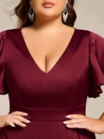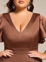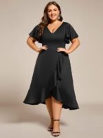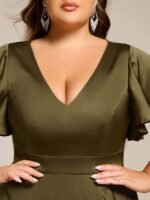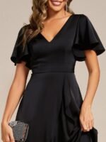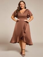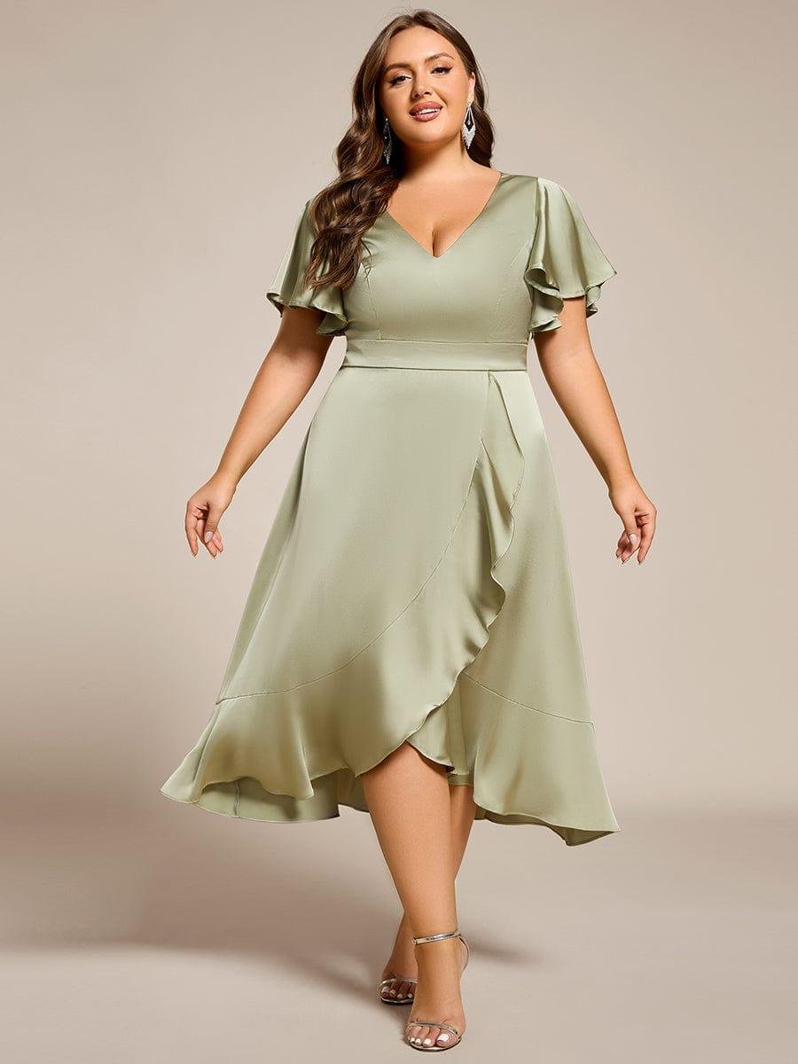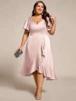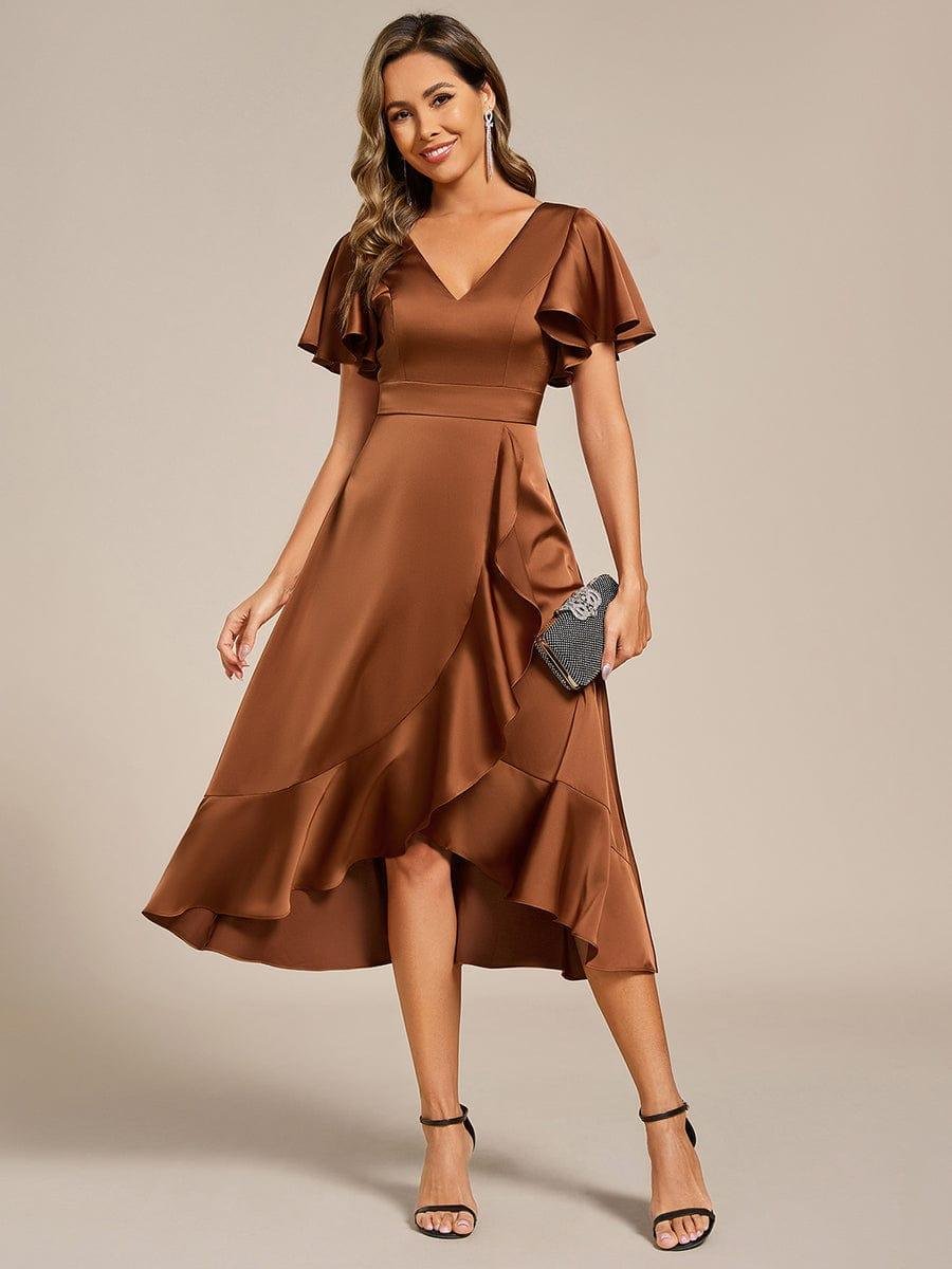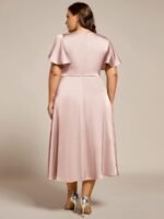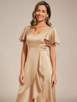 V-Neck Satin Midi Wedding Guest Dress with Ruffled Skirt