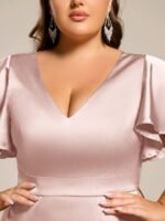 Be the first to review “V-Neck Satin Midi Wedding Guest Dress with Ruffled Skirt” Cancel reply